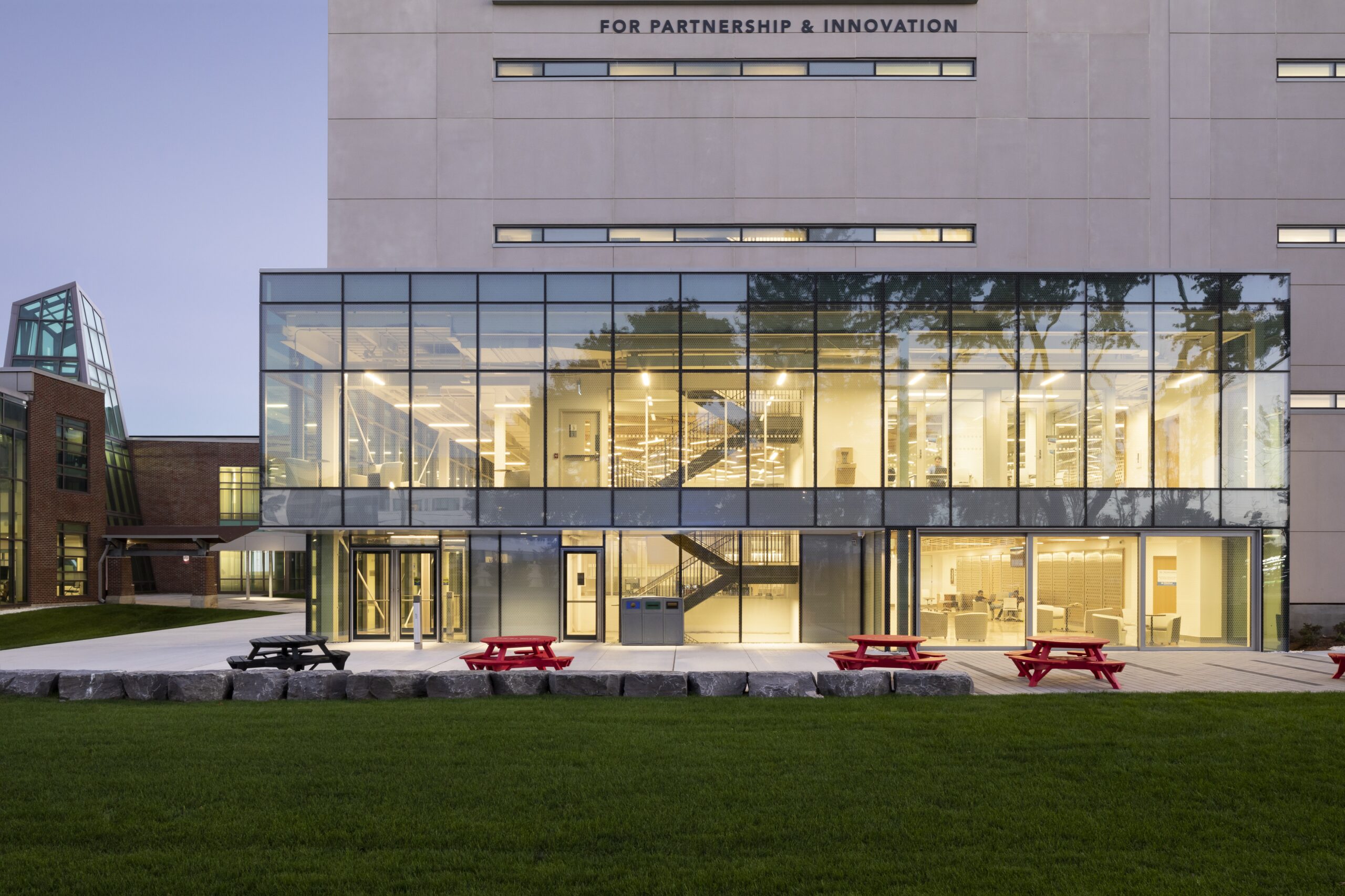 In our firm’s history, we have been apart of amazing teams who have helped to challenge conventional thinking. This includes the design of 77 Governor’s Road in 1999, recognized widely as the most sustainable residential facility of its kind and a project that sparked our participation in a national speaking tour exploring the benefits of an integrated design approach in sustainable design. In 2003, we began offering LEED Facilitation Services, one of the first architectural firms to integrate this into their offerings. In 2004, we completed the design of the EMS Headquarters & Fleet Service Centre, the first project to achieve LEED Gold Certification under the newly formed CaGBC. This was followed by a series of first, projects that pushed our clients’ aspirational goals. In 2018, we achieved another important milestone. Working with B+H, RDH and other sustainable design leaders, our firm completed the first Net Zero Certified institutional facility in Canada, The Joyce Centre for Partnership & Innovation with Mohawk College. This has sparked a new wave of Net Zero opportunities, including the soon to be finished Endress+Hauser Customer Experience Centre in Burlington, Ontario, set to be the first private company to seek LEED Gold/Net Zero targets simultaneously in Canada and a new benchmark for the international privately-owned company.