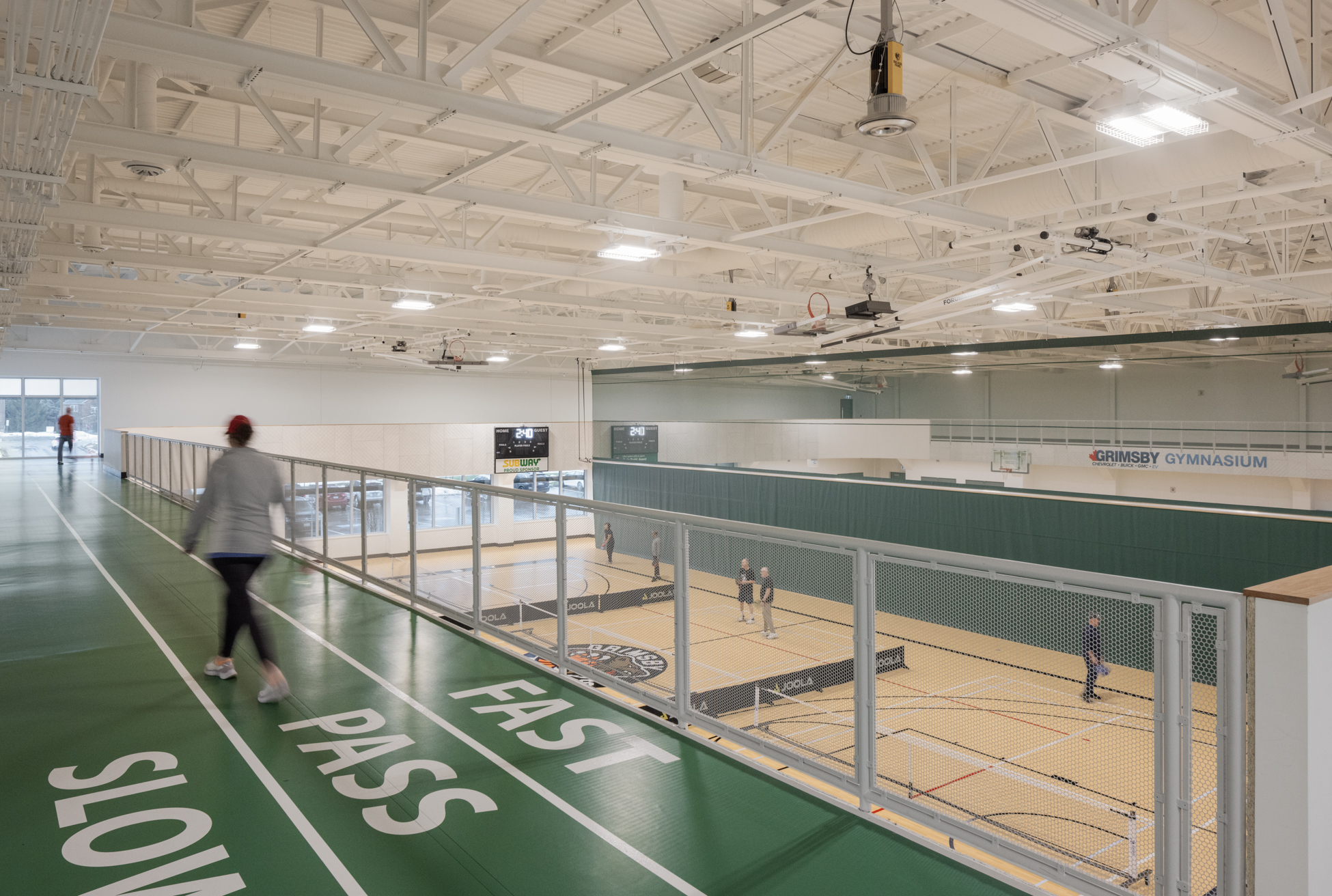 A new addition introduces a double gymnasium, walking track, fitness and youth spaces, and multipurpose rooms, while renovations strengthen the existing arena.